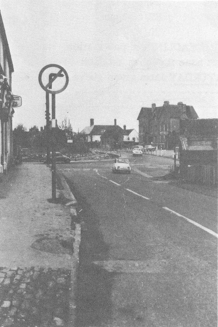 The buildings have been demolished and the side-road, now called simply Eagles leads to a new housing estate. The house to the right of the garage, with the two upper windows visible, was Elliott’s sweet shop, which was run by Mrs Long. It is the last one on a row of old cottages and had to be demolished in order to widen the road. What was left was made into a small public garden (see below).