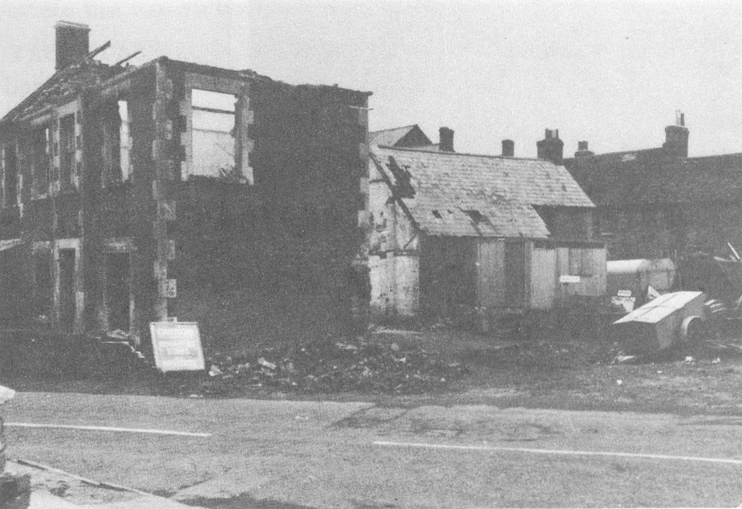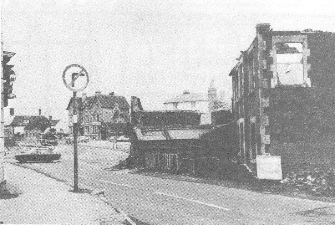 Some of the old buildings being demolished to make way for road improvements at the beginning of Station Road. The old terraced cottages of Bromesgrove can just be seen in the background on the far right. It looks very much like the Duke of York pub at the corner of Coxwell Street and Gravel Walk has gone as well, to later be replaced by the new United Church.